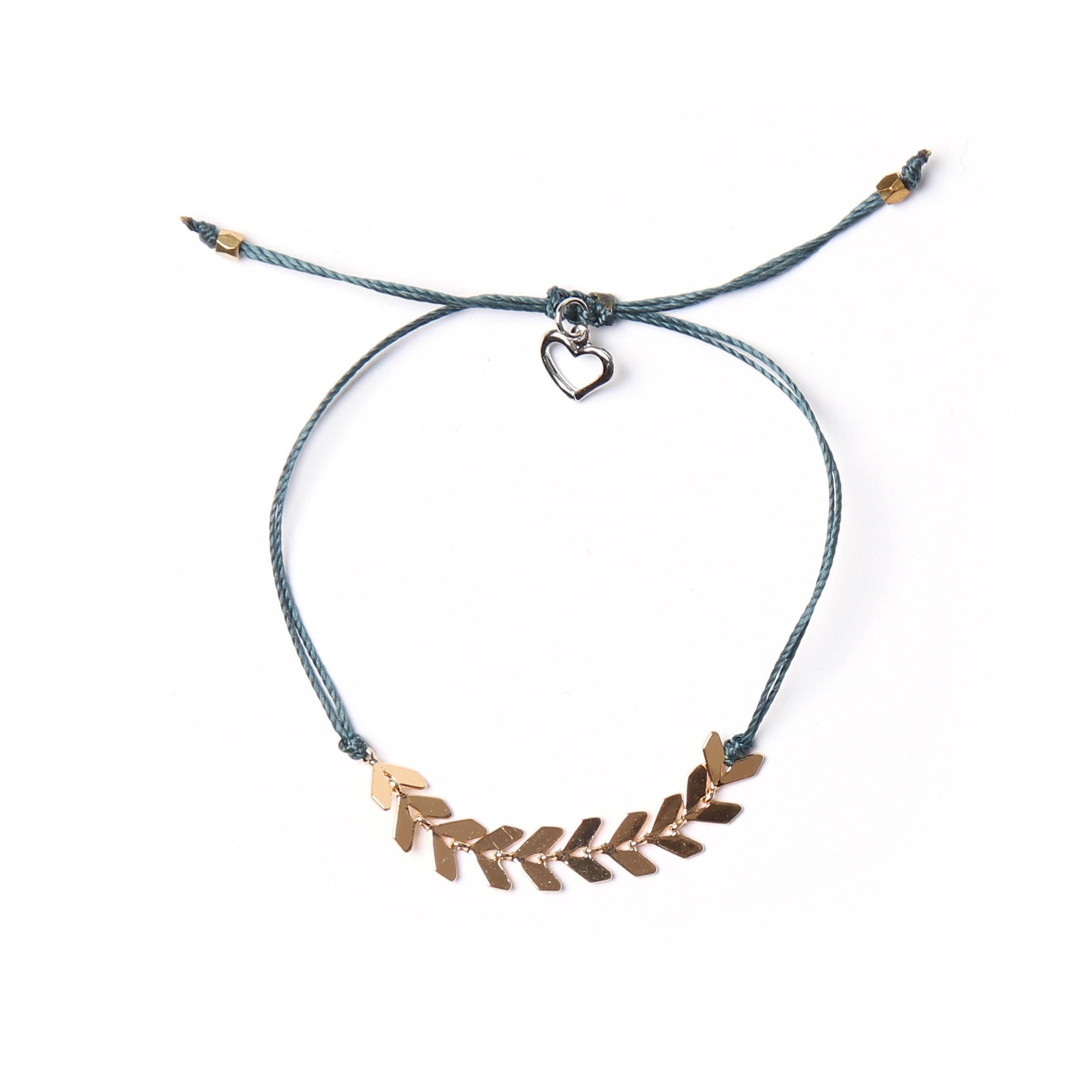 Leaf charm bracelet, chevron chain gold-plated on a nylon thread.
